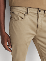 These Fabiani Men's Natural Beige Smart Chino are a luxe alternative to denim with their comfortable cotton stretch construction and modern slim fit. The button fly gives them an elevated feel while red stitching on the inside leg serves signature Fabiani style when cuffed. Wear these smart chinos to work paired with a crisp shirt and a smart blazer.