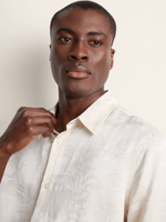 Introducing our Fabiani Men's Natural Cream Jacquard Monogram Shirt - a stylish addition to your wardrobe. Made from soft viscose fabric, this shirt offers a regular fit for all-day comfort. Easy to care for with warm wash, cool iron, and dry cleanable features. Perfect for any occasion!