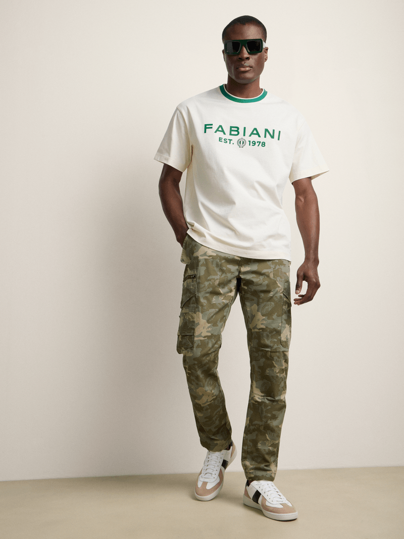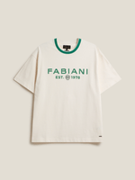 Understated and refined, the Fabiani Men's Natural Cream Neckline With Green Logo T-Shirt elevates everyday style through thoughtful detail. Crafted from premium soft-touch cotton, it features a clean neckline accented by a subtle green Fabiani logo for a fresh, modern contrast. The natural cream tone and tailored fit create a polished, versatile look—perfect for the man who values quiet luxury and contemporary elegance.