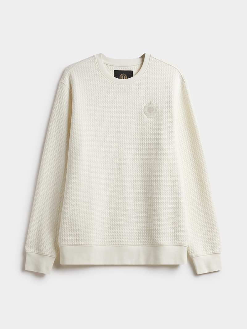 Stay cozy and stylish with the Fabiani Men's Natural Cream Honeycomb Sweatshirt. Made from premium cotton, this sweatshirt features a regular fit for all-day comfort. With cool washing instructions and the option for dry cleaning, it's easy to maintain. A versatile addition to your wardrobe that's both trendy and practical.