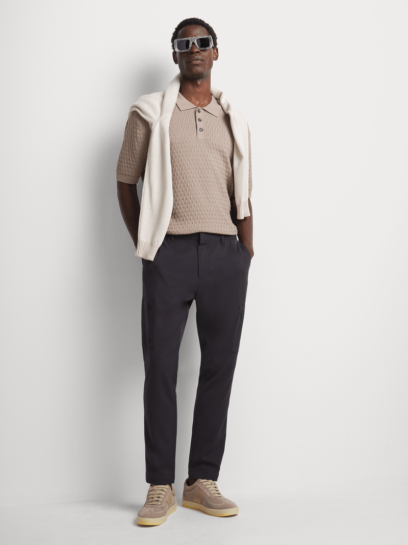Soft, refined, and effortlessly elevated—the Fabiani Men's Natural Stone Knitwear Textured Polo Shirt blends modern sophistication with everyday comfort. Crafted from premium knitwear fabric, it features a subtle textured finish that adds depth and quiet luxury. The natural stone hue enhances its clean, tailored silhouette, creating a polished, versatile look for the man who values understated elegance in every detail.
