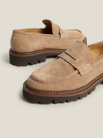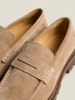 The Fabiani Men’s Natural Stone Suede Logo Penny Loafer. Designed for you — the man who values ease with refinement. Crafted in soft natural stone suede, this penny loafer delivers understated sophistication with a clean, modern profile. Subtle logo detailing adds a quiet mark of identity, while the slip-on design ensures effortless comfort from day to evening. A polished essential for smart-casual moments and elevated everyday wear.