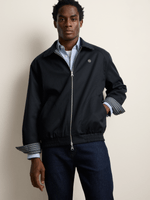 The Fabiani Men’s Navy Reversible Harrington Jacket. Designed for you — the man who values versatility shaped by craftsmanship. The deep navy tone delivers timeless sophistication, while the reversible design offers two distinct looks in one refined silhouette. Expertly crafted for comfort and effortless layering, this Harrington jacket moves seamlessly between relaxed and polished moments with confident ease.