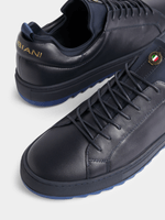 Step up your footwear game with the Fabiani Navy Ridged Sole Court Sneaker. This stylish sneaker features a Mk Lace Up detail and is crafted from high-quality leather for durability. Perfect for those who value comfort and style. Make a statement with every step you take.