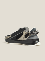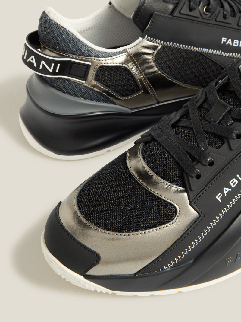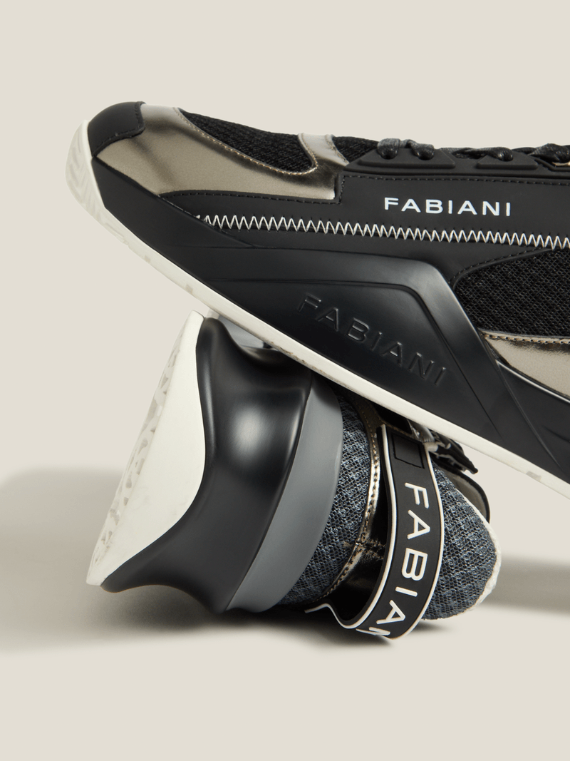 Designed for the man who moves with intent, the Fabiani Men’s Silver/Black Leather & Nylon Crest Sneakers blend modern edge with refined craftsmanship. Premium leather meets lightweight nylon for contrast, comfort, and contemporary appeal, while the crest detail adds a signature finish. A confident choice for elevated casual dressing with unmistakable Fabiani character.