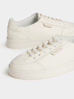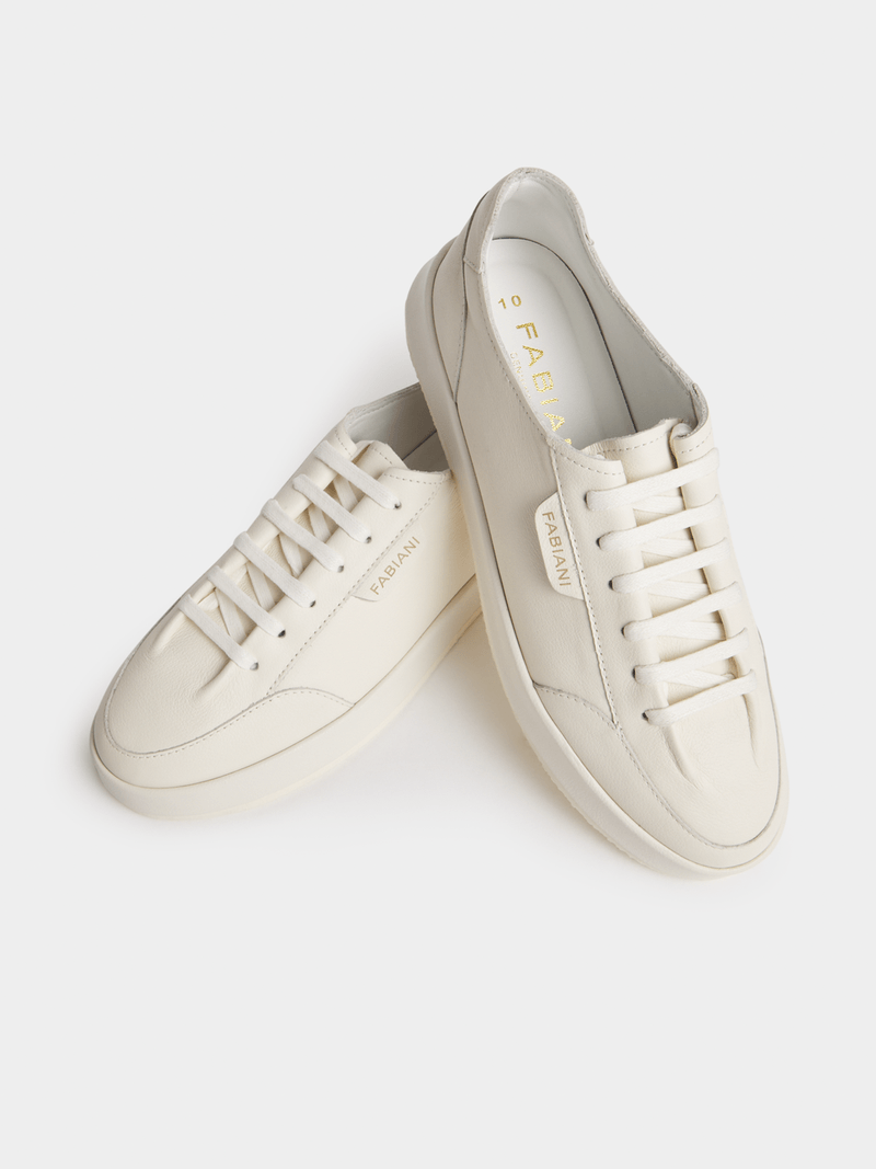 Step out in style with Fabiani's sleek white apron toe leather court sneakers. Crafted from premium leather with a stylish lace-up detail, these shoes are perfect for any casual or formal occasion. With a covered sole for added durability and comfort, these sneakers are a must-have for any fashion-forward individual.