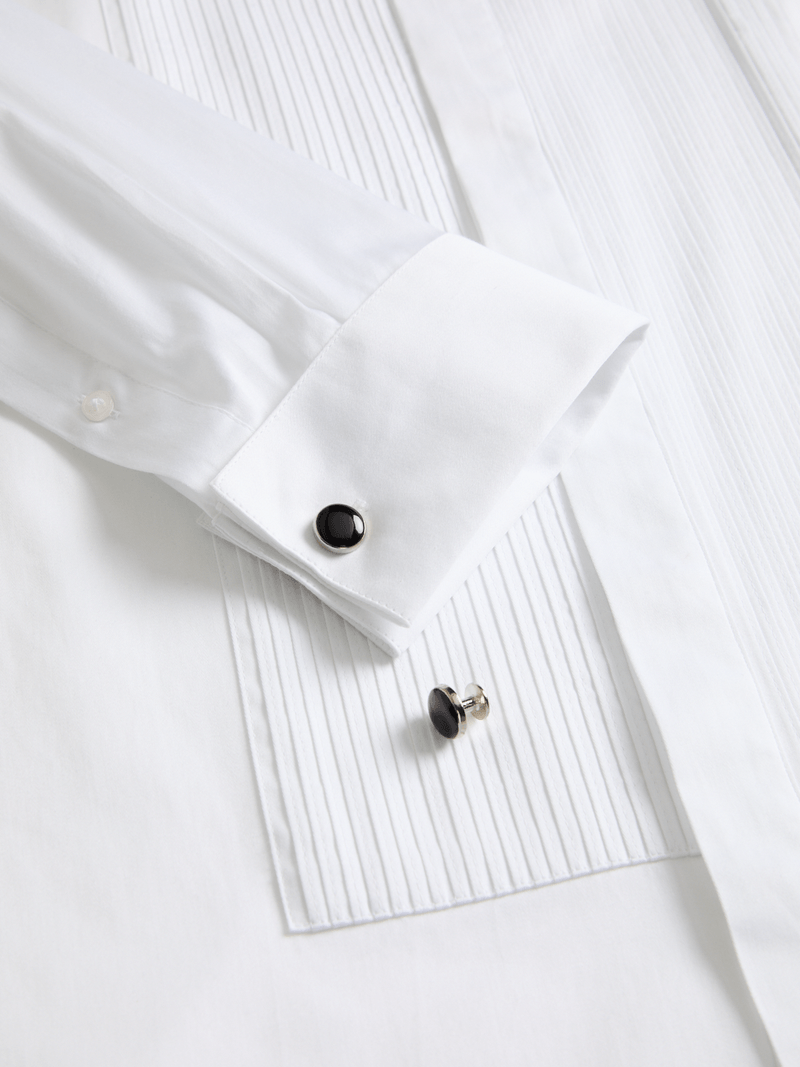 Introducing Fabiani Men's White Concealed Tuxedo Shirt, crafted in cotton fabric for a slim fit. Featuring a hidden placket, this premium shirt is perfect for any formal occasion. Easy to care for with warm wash and cool iron instructions. Elevate your style effortlessly.