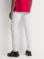 The Fabiani Men's White Skinny Denim Jeans exude modern sophistication with their crisp white hue and sleek skinny silhouette. Tailored for a snug fit, these jeans feature classic five-pocket styling and subtle stitching. Ideal for elevating any casual look with refined edge, perfect for the fashion-forward male.