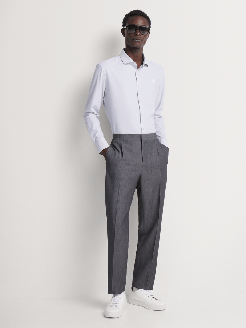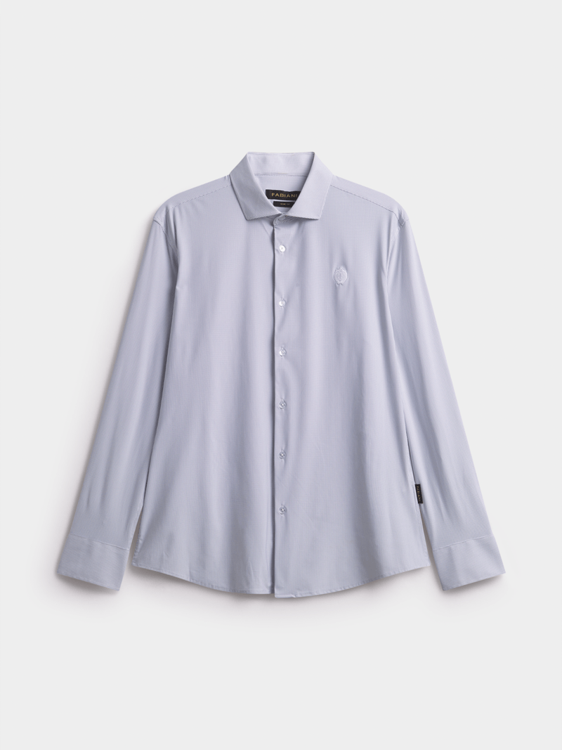 Stay at the top of your game with Fabiani's White Smart Tech Shirt. Designed with advanced nylon spandex fabric, this slim-fit shirt offers comfort and style in equal measure. Easy to care for with warm wash, cool iron, and dry clean instructions. Elevate your wardrobe with this versatile piece perfect for any occasion.