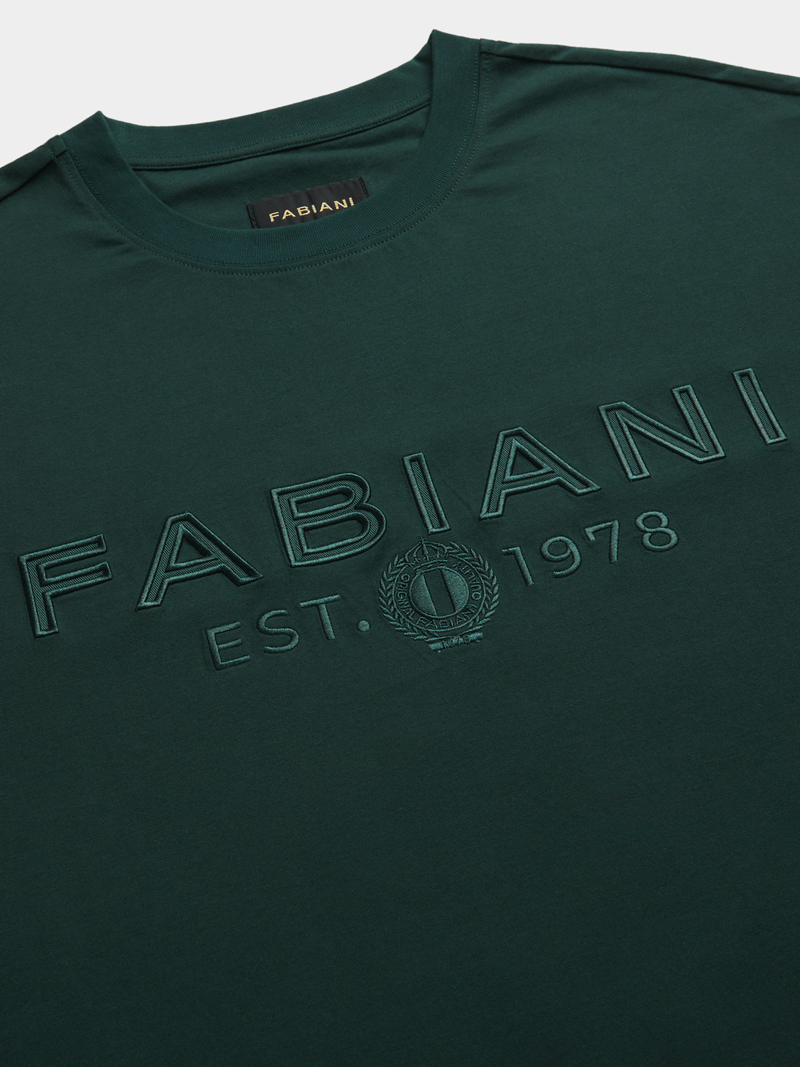 Stay stylish with the Fabiani Men's Green Embroidered 1978 Logo T-Shirt. Made from comfortable cotton, it features a regular fit for all-day wear. Keep it looking fresh with warm washes and cool ironing. Plus, it's easily returnable for your convenience. Add it to your cart today!