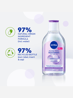 Formulated with an innovative Micellar Technology, NIVEA Soothing Micellar Water for Sensitive Skin protects your skin’s natural protective barrier and thoroughly cleanses your skin without the need for rubbing or rinsing.