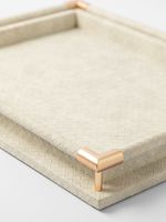 Our Faux Leather Plaited Tray creates an elegant focal point and place to organise decorative objects on a coffee table, dining table or console. It features a plaited faux leather finish with a raised edge and gold corner accents. Whether styled with candles and a vase in the living room or coffee station jars in the kitchen, this stylish tray uplifts any space.