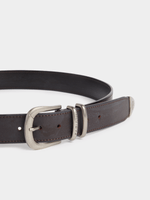 Upgrade your style with the Fabiani Brown Leather Western Metal Trim Belt. Made with high-quality leather, this belt features a stylish metal trim detail. It's a versatile accessory that adds a touch of sophistication to any outfit. Say hello to effortless chic with this must-have piece.