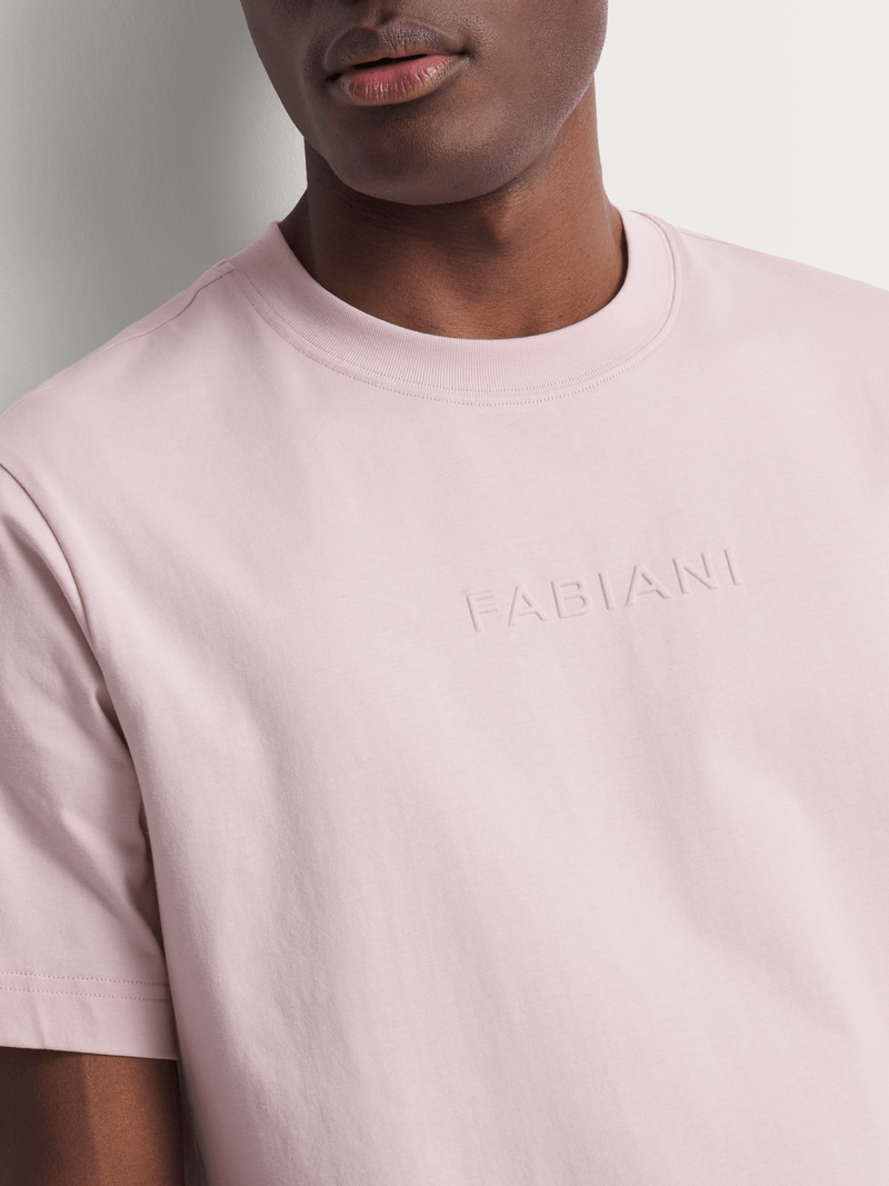 Introducing our Fabiani Pink Logo Tee with Small Embossing, crafted from soft cotton for all-day comfort. This regular fit shirt is easy to care for with warm wash instructions, cool iron, and dry cleanable. A stylish addition to your wardrobe, perfect for any casual outing.