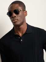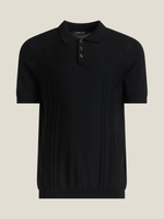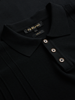 The Fabiani Men's Black Pintuck Button Through Polo Golfer is a stylish addition to your wardrobe. Made from a viscose blend fabric, this regular fit top is easy to care for by hand washing. The unique pintuck detailing adds a touch of sophistication to your look. Perfect for any occasion, it's a versatile piece that you'll love to wear.