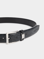 Elevate your style with Fabiani's black Smart Croc Leather Belt. Featuring intricate MK patterns and crafted from premium leather, this accessory is a must-have for any wardrobe. Enjoy the luxe feel and timeless design that effortlessly completes any outfit.