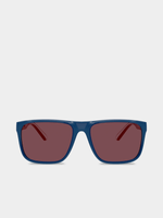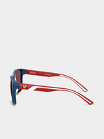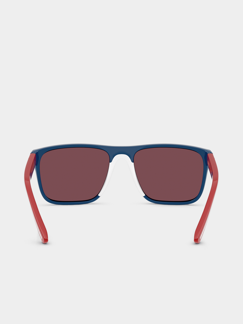 Elevate your style with these Ferrari Scuderia Blue Sunglasses. Made in Italy with a polycarbonate frame, they feature blue lenses with a unique Bordeaux tint. The measurements ensure a comfortable fit. Perfect for any sunny day outing, these sunglasses are a must-have accessory.