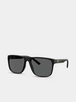 Experience the iconic sleek style of luxurious Ferrari Scuderia Matte Black 59 Sunglasses. Crafted in Italy with injected material, these sunglasses feature polarized grey lenses for reliable eye protection. Backed by a 2-year warranty for manufacturing defects. Perfect for sunny days!