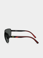 Experience sleek style with the Ferrari Scuderia Matte Black Sunglasses. Made of 100% metal, these Italian-crafted shades feature a dark grey lens. With a lens width of 64mm and a modern matte black frame, these sunglasses are sure to turn heads. Buy with confidence and designed for the fashion-forward individual.