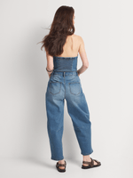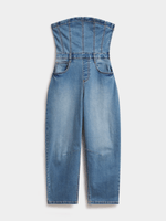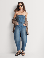 Stand out in our FF Denim Barrel Leg Boobtube Jumpsuit. Made from comfortable stretch denim, it has a flattering fitted waist with on-trend barrel legs and a fitted strapless top. Wear it with western-style ankle boots and complete the look with hoop earrings and a shoulder bag.