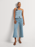 The FF Denim Button Through Bustier Top is an on-trend choice this season. Wear it with a denim mini skirt for a coord look, or opt for wide leg trousers for a different take.