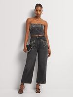 Dazzle in the FF Denim Embellished Straight Leg Jeans - a nod to the hottest Western trend. Wear this straight leg denim with the coord News Denim Embellished Boobtube and embellished heels for a glam head-to-toe look.