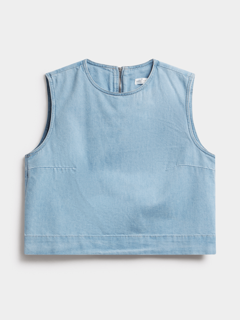 Our FF Denim Fluid Denim Shell Top is made from soft and flowy denim in a sleeveless shell top style. Pair it with wide-leg pants or with the matching FF Denim Back Elastic Fluid Denim Wide Leg Jeans for an on-trend coord set.