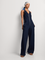 Sexy and stylish, wear our on-trend FF Denim Halterneck Front Zip Jumpsuit on a night out paired with strappy heels and oversized hoop earrings. Complete the look with a cute shoulder bag.