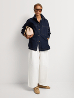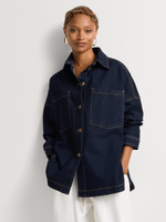 Layer your look with our FF Denim Longer Length Shacket. The longer length and relaxed fit make it a stylish piece to add to your collection. Wear it open or closed over a maxi dress, skirt or jeans.