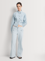 Our FF Denim Panelled Jacket offers a fresh update on a classic style. This version features panelling with a press stud front closure. Wear it with jeans for a denim-on-denim look, or pair it with wide-leg cargo pants.