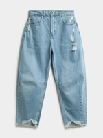 Our FF Denim Ripped Barrel Leg Jeans are the perfect update for your denim collection. The on-trend barrel leg and ripped hem detail bring edgy style to your looks. Wear them with sandals and an oversized graphic tee.