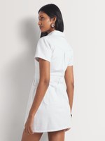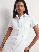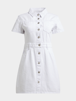 Our FF Denim Short Sleeve Button Through Dress combines comfort and style, offering a relaxed yet polished look. Crisp 100% cotton denim and a cinched waistline make a flattering fit. Ideal for summer, pair it with sneakers for a casual vibe or dress it up with sandals and accessories for a more elevated look.