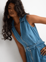 Our FF Denim Sleeveless Front Zip Shirt Dress is a great summer staple. Wear it casually with sneakers, or dress it up with heels for a night out. Add a monogram handbag and timeless jewellery.
