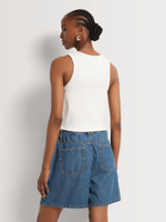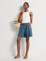 Mid-length shorts are a must-have this summer. Our FF Denim Soft Front Pleat Mom Shorts are an on-trend style made from soft denim in a high-rise cut with pleat detail for a vintage-inspired look. Wear them with a basic vest and simple slides, or with a button-down shirt and espadrille flatforms.
