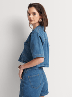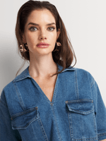 The FF Denim V-Neck Collar Short Sleeve Top is an on-trend addition to your denim collection. Wear it with the matching FF Denim Wrap Skort for a coord set, or with wide-leg trousers and raffia wedges.