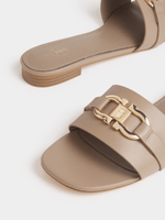 Versatile and stylish, our FF Hardware Flat Slip On Sandals are comfortable and elegant. Wear them with wide-leg trousers or maxi dresses for polished casual style.
