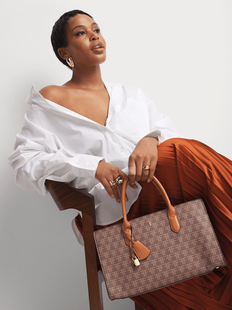 The FF Logo Tote Bag exudes timeless style with its classic design. This chic handbag complements every look effortlessly, from casual to dressier outfits.