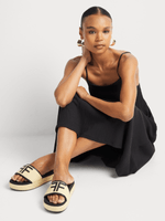 On trend and comfortable, our FF Rafia Flatform Sandals are great for added height for your casual looks. Wear them with your favourite denim, or with flowy skirts and wide-leg trousers.