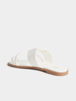 Our FF Toe Loop Slip In Sandals are comfortable flats with loads of style. The asymmetrical strap detail and metal hardware elevate the look, making them the perfect partner to wide-leg pants, smart trousers and maxi dresses.