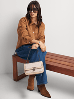 Update your handbag collection with the FF Tonal Jacquard Shoulder Bag. This chic, structured bag features a secure flap closure and jacquard fabric with a chain strap. Whether carried with a casual jeans and tee combo or a stylish midi dress and heels, this shoulder bag is a versatile addition to your rotation.