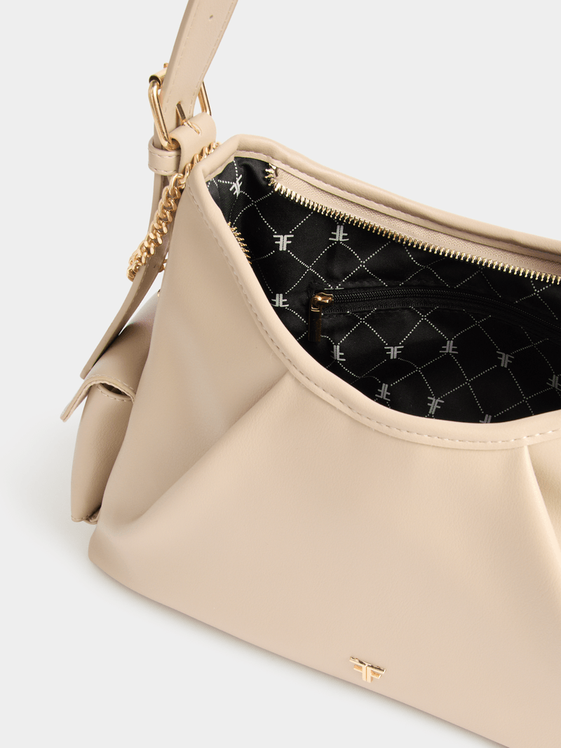 The FF Utility Shoulder Bag elevates your style with its sleek lines and on-trend utility details. Carry it with co-ord sets, a classic shirt dress or barrel leg jeans and a basic tee.