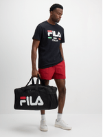 Introducing the Fila Fox duffle bag in sleek black. Made from durable polyester, this bag is perfect for all your on-the-go needs. With a roomy interior and sturdy construction, it's ideal for travel or daily use. Stay organized and stylish with this versatile accessory.
