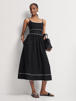 Our Fit & Flare Piping Detail Dress is a feminine and flattering piece for summer. Made from beautiful linen-blend fabric, the fitted waist and midi-length hem are accentuated by contrast piping for a touch of sophisticated elegance.