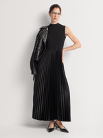 Flattering and stylish, our Fit & Flare Pleated Satin Combo Dress is the perfect choice for any occasion. The fitted sleeveless top is form-fitting, while the a-line pleated satin midi skirt is feminine and on-trend. Dress it up with heels and bold jewellery, or down with sneakers and a statement handbag.