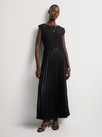 Our Fit & Flare Pleated Satin Combo Dress has a timeless feel with its elegant boat neck and flared, pleated skirt. Wear it with kitten heels or classic courts with understated accessories for effortless style.