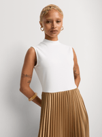 Flattering and stylish, our Fit & Flare Pleated Satin Combo Dress is the perfect choice for any occasion. The fitted sleeveless top is form-fitting, while the a-line pleated satin midi skirt is feminine and on-trend. Dress it up with heels and bold jewellery, or down with sneakers and a statement handbag.