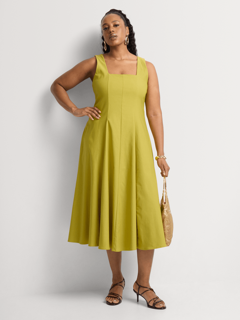 Exude effortless style and sophistication in our Fit & Flare Panelled Midi Dress at your next occasion or event. This beautiful dress features a square neckline and a flattering fitted waist that flares into a full midi-length skirt. Wear it with elegant court heels and understated jewellery.