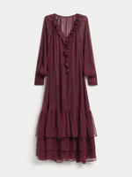 Pretty and soft, our Fit & Flare Tiered Ruffle Maxi Dress is floaty and feminine, perfect for date night, girls' brunch, or a casual event. Add heels and a monogram handbag.