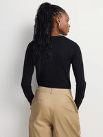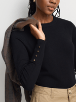 Our Cuff Buttons Fitted Crew Neck Jersey is a wardrobe staple with elevated detail. Wear this fitted knit with denim, smart trousers, or a maxi skirt.