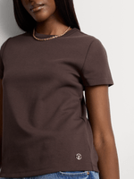 Our Fitted Short Sleeve T-Shirt is a classic basic that works hard in your wardrobe. Wear it with denim, shorts, skirts and pants with its flattering fit and comfortable, breathable cotton.